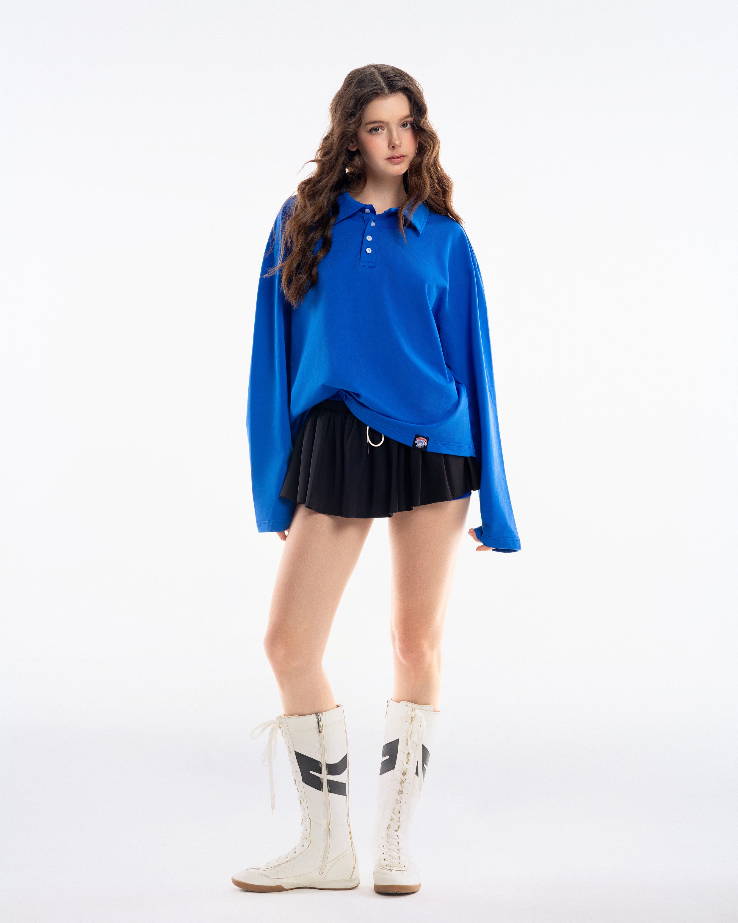 • Features: Button placket, decorative brand tag at hem