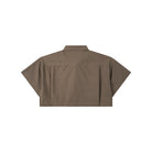A sharp, contemporary piece. This crop shirt features a structured, non-stretch fit with precise details like a welt chest pocket, sleeve tag, and a shaping back pleat.
