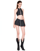 A playful mini skirt designed for a fun and flattering fit. The flexible fabric ensures comfort while maintaining a structured silhouette, perfect for mixing into your daily rotation.